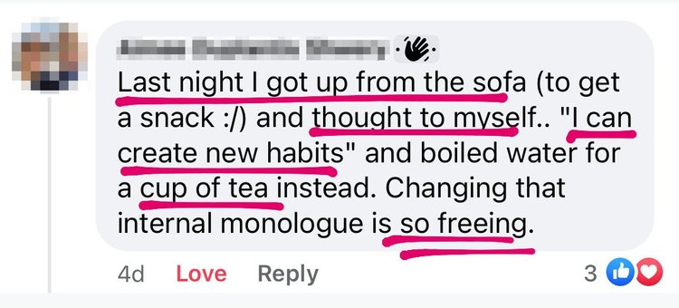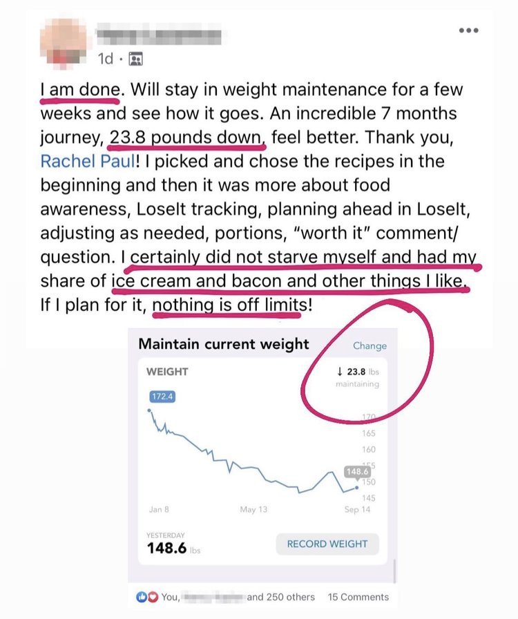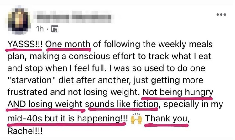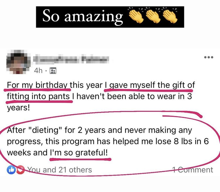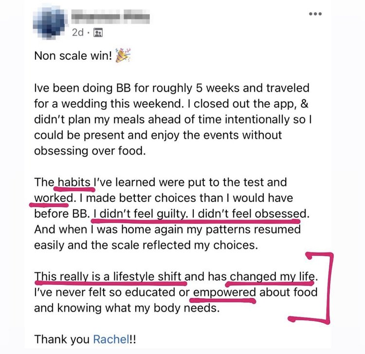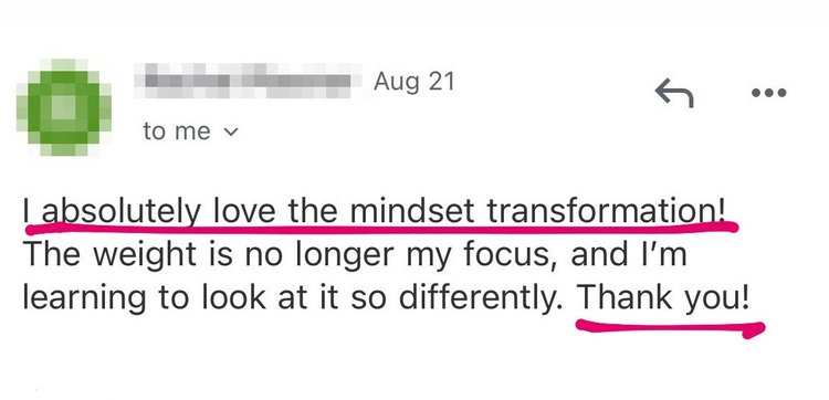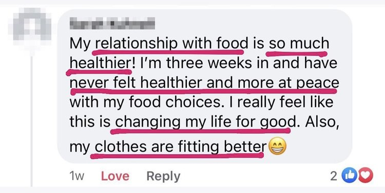 I’ve never been happy with my body until taking this journey over the past year. I changed my thinking around my body, and my relationship with food and making me more secure, less of a perfectionist, and overall much much happier. This program is so much more than just a way to lose weight, and I’m so grateful for it.