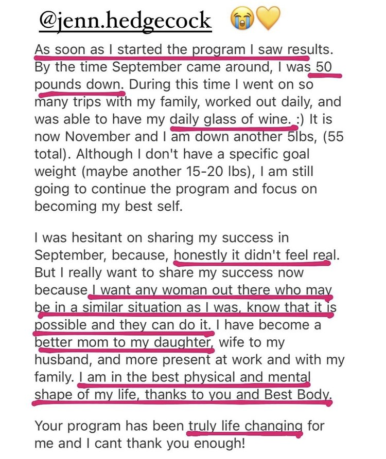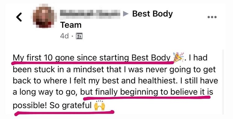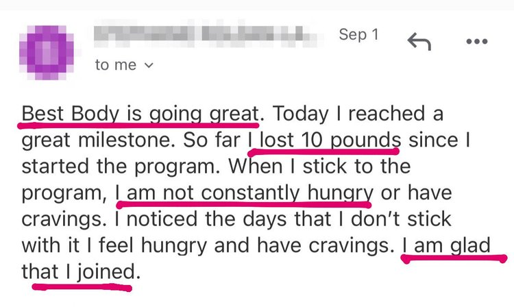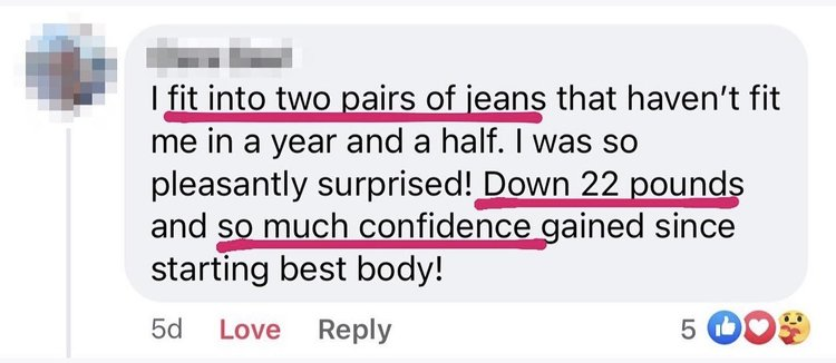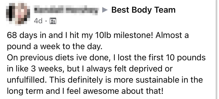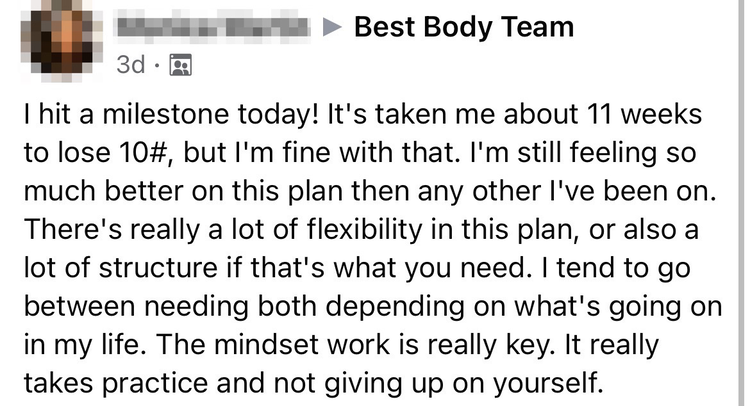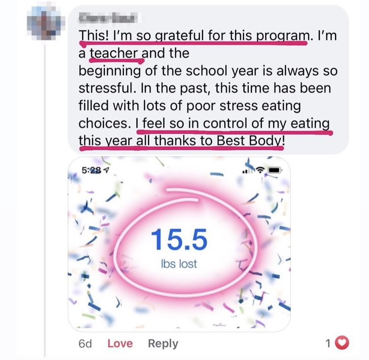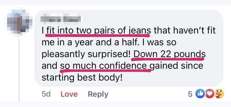 I’ve steadily lost 20 pounds. Best Body has literally changed my life and is the most sustainable weight loss I’ve ever had.