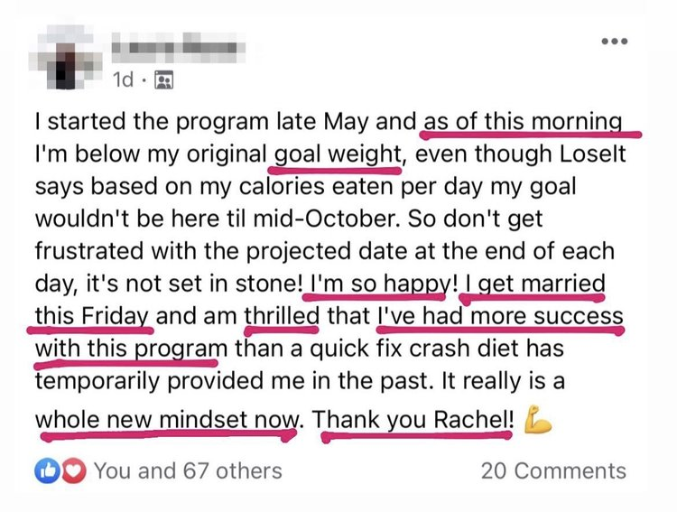 I’m 20 pounds from my goal weight! I feel amazing and I’m loving my energy level at 68!! Shout out to Dr. Rachel for helping me changing my mindset about my relationship with food.